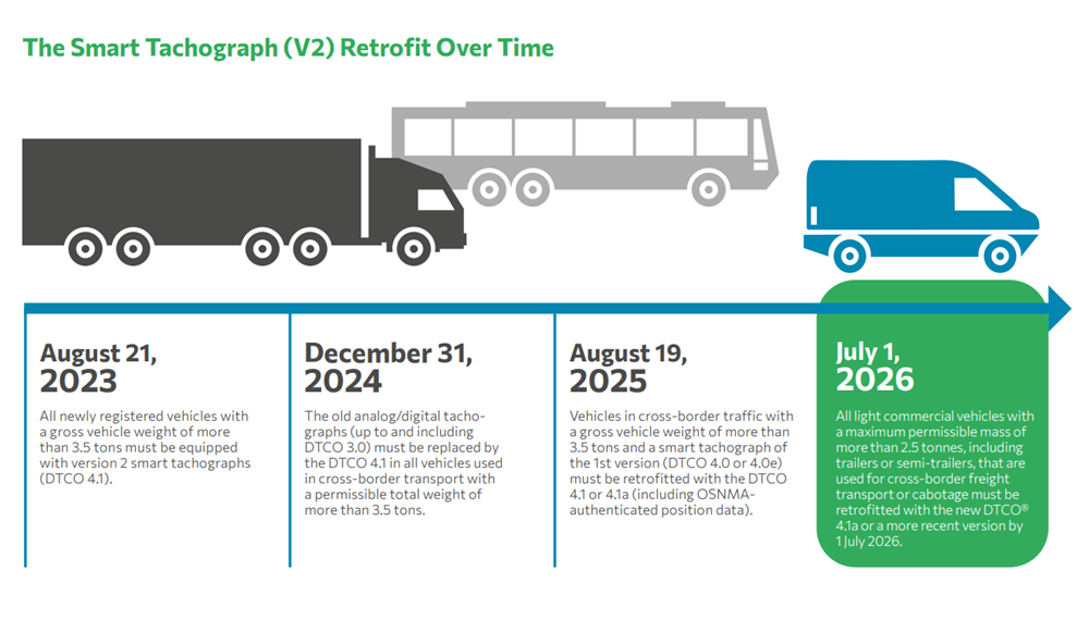 Exemptions apply in certain cases – for example, for own-account transport, provided that driving is not the driver's main activity. For further information, please visit the VDO Portal at my.vdo.com or the European Commission’s official site: